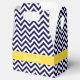 Navy Blue and White Large Chevron ZigZag Pattern, Pineapple Yellow Ribbon Name Monogram Label