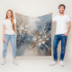Navy Blue Light Blue Brown Modern Floral Fleece Blanket