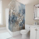 Navy Blue Light Blue Brown Modern Floral Shower Curtain