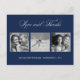Navy Blue Love and Thanks Wedding 3-Photo Template Postcard