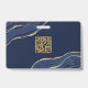 Navy Blue Marble Agate Geode Business QR Code Name ID Badge