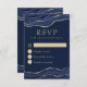Navy Blue Marble Agate Gold Glitter Wedding RSVP Card