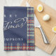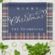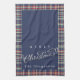 Navy Blue Merry Christmas Plaid Custom Tea Towel