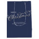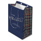 Navy Blue Merry Christmas Plaid Pattern Medium Gift Bag