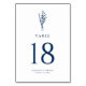 Navy Blue Minimalist Botanicals Wedding Table Number