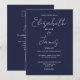 This navy blue minimalist elegant script wedding invitation can be personalised with your information in chic typography with your wedding website details and your QR code on the reverse. Designed by Thisisnotme©