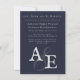 Navy Blue Minimalist Monogram Rehearsal Dinner Invitation