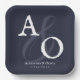Navy Blue Minimalist Monogram Wedding Paper Plate