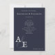 Navy Blue Minimalist Monogram Wedding Program