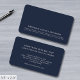 Simple, stylish business card design in classic typography with a clean minimalist design on a navy blue background. The name, title and contact details can be easily personalised for a unique and professional design statement to enhance your business presence. This business card exudes sophistication and professionalism, making it a powerful tool for networking and representing your brand.