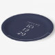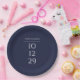 Elegant paper plate featuring your special date and names set in modern typography on a navy blue background. Designed by Thisisnotme©