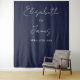This navy blue minimalist elegant script wedding photo booth backdrop can be personalised with your information in chic typography. Designed by Thisisnotme©