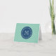Navy Blue, Mint Green Chevron Pattern | Your Monog Note Card