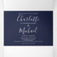 All in one navy blue tri-fold wedding invitation featuring elegant typography. The invitation includes your celebration guest information details and a detachable RSVP card. Designed by Thisisnotme©