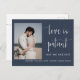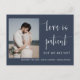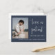 Navy Blue Modern Minimal Script Photo Elopement Postcard