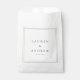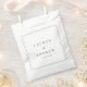 Our navy blue, modern, minimalist wedding favour bags, offers a simple and elegant classic font. You can personalise by changing the names, date and/or colours to match your wedding theme.