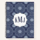 Stay organised in style with this modern cute monogram notebook, perfect for home, office, or school! Featuring a sophisticated contemporary design, it showcases a stylish, unique pattern in elegant navy blue and white with a classic mandala style. Personalise it with your monogrammed name initials, accented by bold lettering design and trendy fun typography. This notebook seamlessly blends creativity with practicality, making it a chic and versatile addition to your daily essentials.