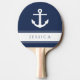 Navy Blue Modern Nautical Anchor Custom Name Ping Pong Paddle