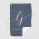 Navy Blue White Modern Script Girly Monogram Name Elegant Golf Towel