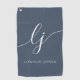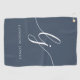 Navy Blue Modern Script Monogram Name Elegant Golf Towel