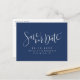 Hand lettered save the date script on colour editable navy blue background, elegant and stylish, great modern simple personalised save the date postcards.