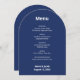 This bold modern wedding menu features white lettering on a navy blue background. The menu is easy to personalise in the online personalisation template before ordering the printed menu card from Zazzle. Should you wish to adjust font size or layout, please scroll down in the personalisation template and click the "Edit using Design Tool" option.