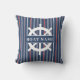 Navy Blue Monogram Boat Name Rope Stripes Nautical Cushion