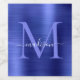 Navy Blue Monogram Girly Script Metallic Steel Wine Label