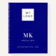 A navy blue background, white text. Personalise and add your logo, monogram initials, name and a title. Your logo both on the front and the back. Space for your website address on the back.