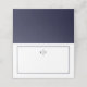 Elegant block monogram wedding place card. Navy blue text with thin navy blue border. Navy blue back and inside. To adjust the text layout, click Customise It, Edit or Add Text, then click and drag text sections to desired locations. Use Cntrl to select and move multiple sections at once.