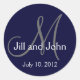 Navy Blue and White Monogram Initial, Bride and Groom Names and Wedding Date Wedding Stickers by Elke Clarke©2009 Perfect for wedding favours, cake boxes and wedding invitations