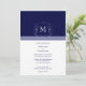 Formal wedding invitation with classic monogram and a navy blue border. Easy-to-use template, with space to add your own information. Get the matching RSVP cards shown below.