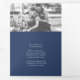 Navy blue monogram wreath story dedication wedding Tri-Fold programme