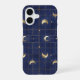 Navy Blue Moon and Gold Grid Design iPhone 16 Case