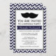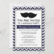 Navy Blue Moustache Chevron Birthday Party Invitation