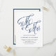 This customisable navy blue wedding invitation postcard brings a perfect blend of rustic elegance and modern convenience. Featuring "Mr. and Mrs." in beautiful rustic calligraphy. Personalise by adding names, date, time, venue and other details.