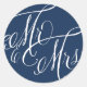 Navy Blue Mr. & Mrs. Elegant Script Wedding Classic Round Sticker