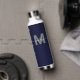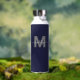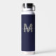 Create Your Own Personalised Navy Blue Initial Script Name Monogram Water Bottle. This stylish and modern water bottle features a deep navy blue background for a sleek and versatile look. A soft grey initial sits in the centre with a clean, flat finish, while a white flowing script name overlays the letter for a personalised touch. The custom monogram design appears on both sides, making it easy to show off your style from any angle. Perfect for students, teachers, gym-goers, or anyone on the go, this water bottle adds a functional yet polished accent to your daily routine. Great for birthdays, holidays, or everyday use, it’s a thoughtful gift that blends practicality with timeless design.