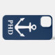 Navy blue nautical anchor custom monogram iPhone 13 Case. Add your own personalised name, monogram or initials. Custom colours. Great for sailor, skipper, boat captain, fisher etc.
