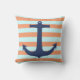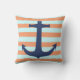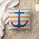 Navy Blue Nautical Anchor Orange Mint Blue Stripes Cushion