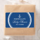 Custom navy blue and white nautical baby shower water bottle labels with little boat anchor. Personalised elegant DIY waterbottle sticker template with ship anchors away. Stylish script typography for name and birth date of baby girl or boy. Use as classy maritime table decoration or thank you favour for guests at the party. Neutral template design with customisable background colour. ie pastel blue, light grey, purple or soft yellow. Sailor theme.