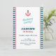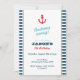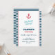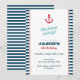 Modern Birthday Party Invitation featuring an anchor illustration and a navy blue striped background. Perfect for a Birthday party, Baby Shower or Nautical themed celebration.