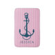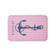 Navy Blue Nautical Boat Anchor & Pink Stripes Bath Mat