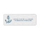 Elegant navy blue nautical boat anchor over white floral damasks pattern, customisable return address label.