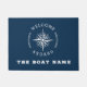 boat mat with a navy blue colour and personalised name detail and nautical elements The colour and text are editable.