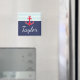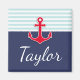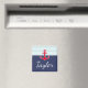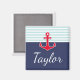 Navy blue and red nautical magnet design with custom text.
