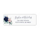 These stylish and trendy wedding return address labels feature a white background with nautical coloured watercolor flowers and green leaves. Your names and return address appear in modern, dark navy blue text and script typography.