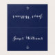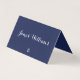 Navy blue and white simple folded place setting cards (horizontal tent) with white text and anchor printed on navy blue background. Dimensions of the cards are 2 inches x 3.5 inches (folded) and 4 inches by 3.5 inches (unfolded).