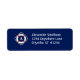 A nautical themed design featuring a lifesaver image with a monogram and your name and address on a navy blue background.