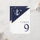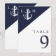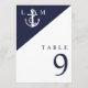 Navy Blue Nautical Monogram Wedding Table Number